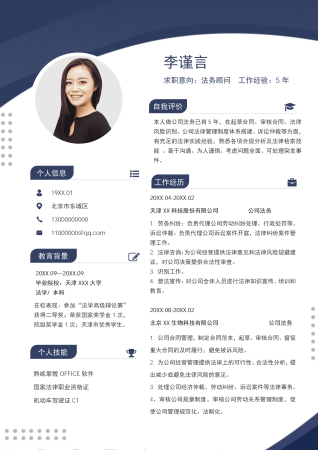 法务人员律师助理免费简历模板