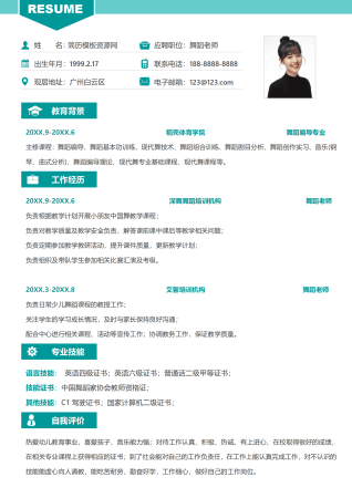 上下结构蓝色简约语文教师1-3年经验社招求职简历