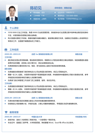 蓝色简约电商实习互联网应届大学生校招求职简历