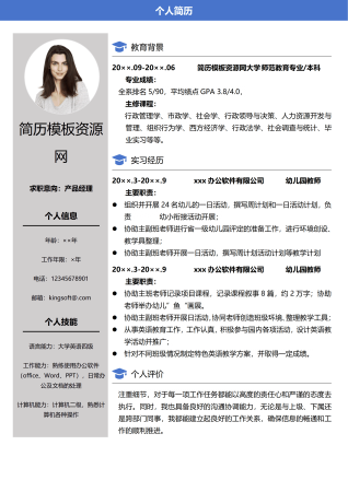 幼儿教师求职免费简历模板