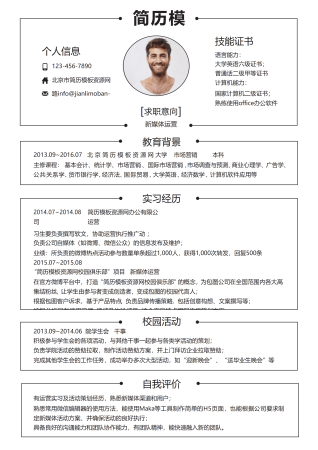 带头像市场专员简历模板