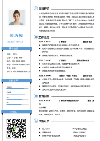 蓝色创意高级客户经理简历模板