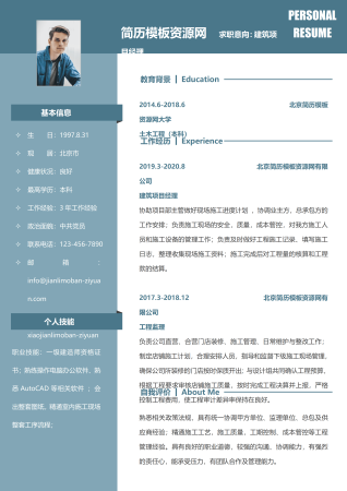 蓝色极简现代商务建筑项目经理应聘简历Word
