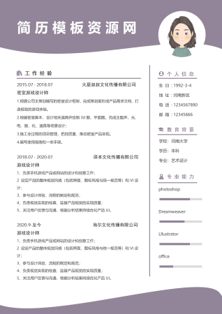 大专游戏设计简历