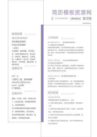 信贷专员求职简历--适用应届生,有银行实习经历