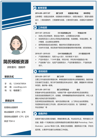插画漫画师简历模板