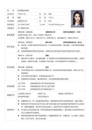水彩喷墨时尚风格音乐老师求职简历word简历模板