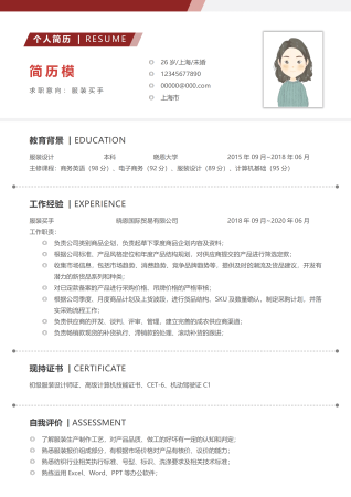 红色简约商务服装买手个人求职简历