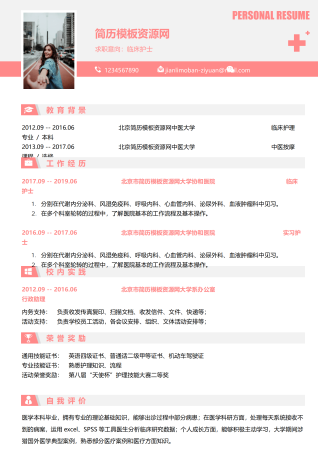 临床护理专业免费简历模板