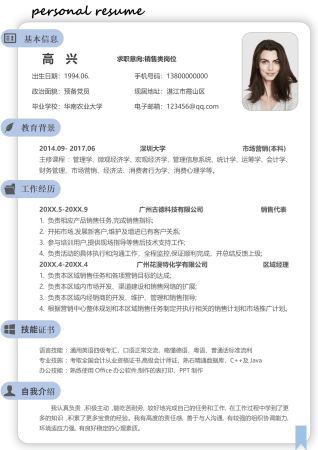 人事专员行政文职类岗位求职简历模板
