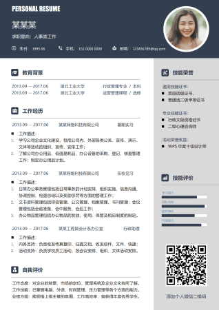 行政文职人力资源管理类岗位求职简历模板