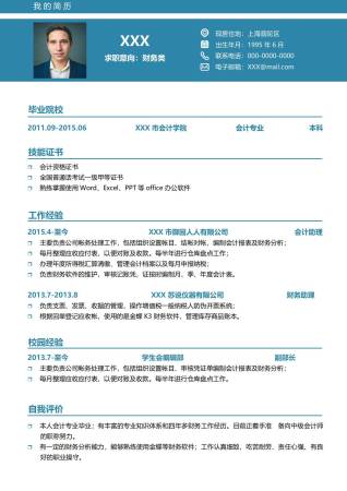 会计师专享!免费财务英文简历模板(稳重蓝)