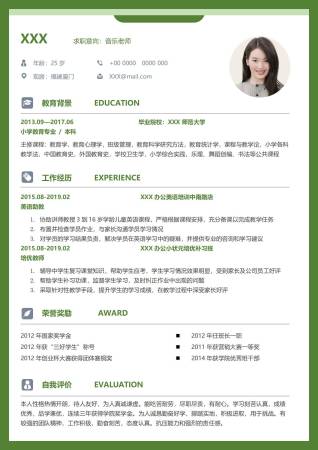 沉稳绿色大学助教3-5年经验简历
