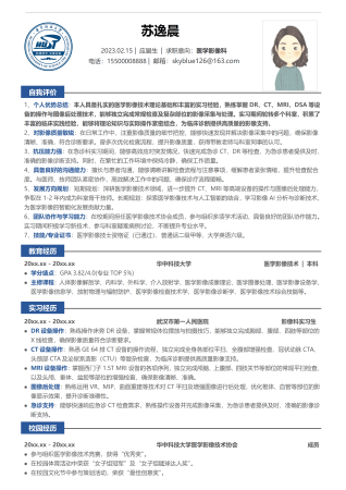 简历模板医学影像技术