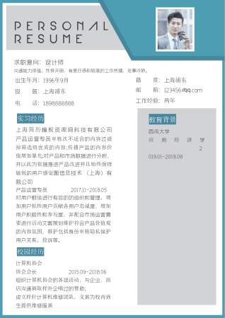 经典商务风互联网求职经理求职简历深蓝色word格简历模板