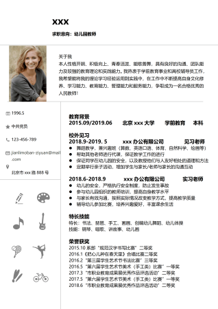 幼儿园教师岗位候选人学前教育简历模板