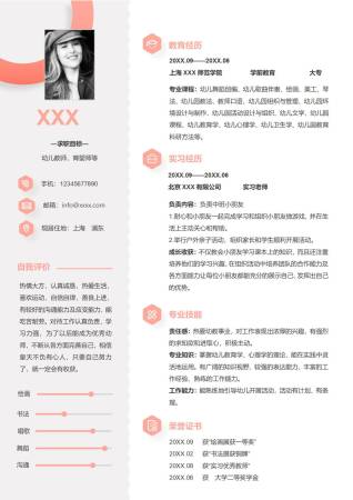 幼教幼师文职类相关岗位求职简约表格简历模板