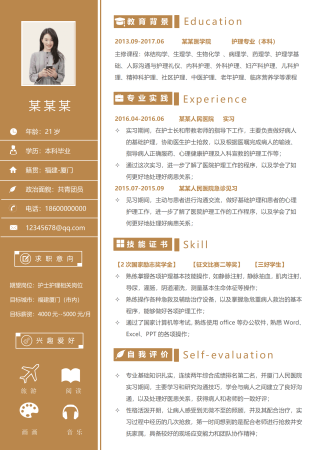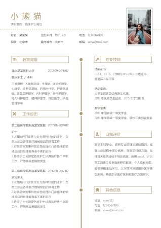 护理专业应届生个人简历医学生RESUME护士个人求职CV