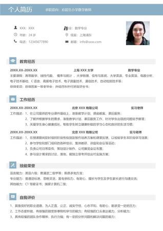 数学教师简历中学无经验师范应届生老师个人求职CV模板