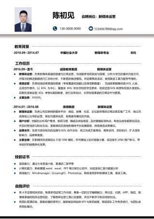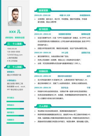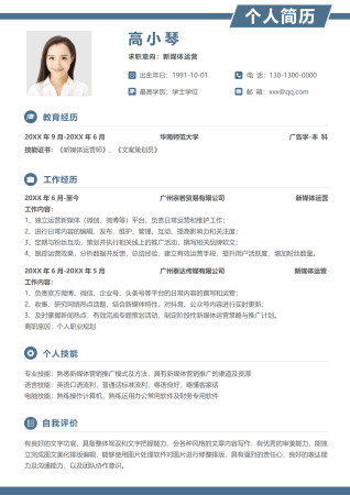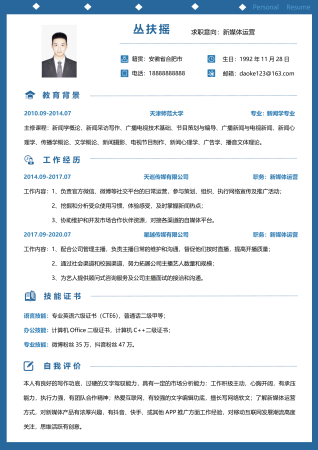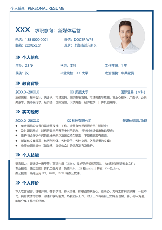 应届生简历实习生简历新媒体运营个人求职简历word简历模板
