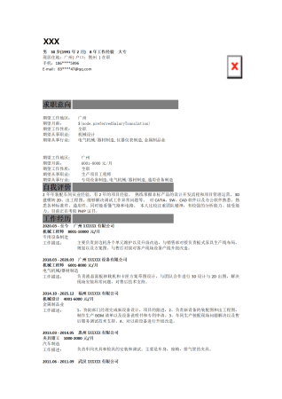 活泼机机械设计5年经验简历