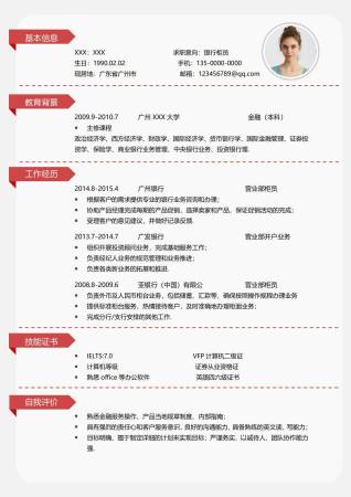 面试银行柜员简历模板