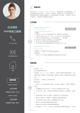 绿色清新灰色研发工程师求职简历word简历模板