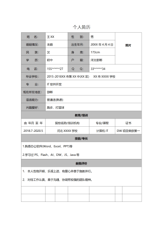 软件开发JAVA工程师相关应届生岗位求职简历模板