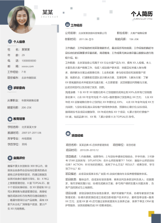 创意大气沉稳简约实用销售经理7年工作经验简历Word简历模板