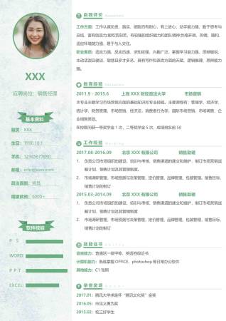 薄荷绿简约销售经理求职简历word模板