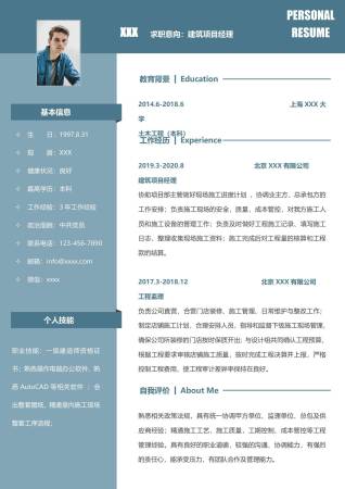 蓝色极简现代商务建筑项目经理应聘简历Word模板