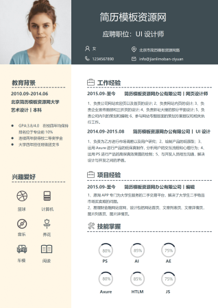 兼职大学平面及UI设计老师求职简历(含封面自荐信)