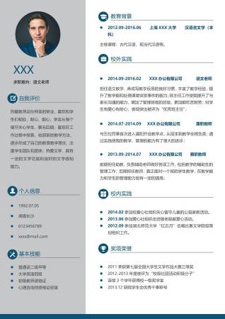 蓝色经典英语老师求职简历word模板