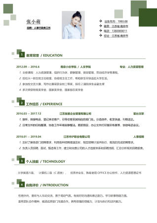 清新简约薄荷绿流岗位个人求职简历Word模板