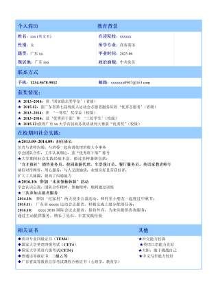 市场营销数据分析简历模板 全国大赛一等奖获得者