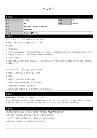 精细化工专业个人简历模板---大气实用受欢迎的简历