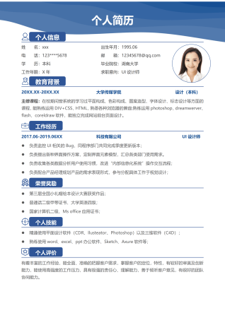 蓝色设计类工作个人求职简历