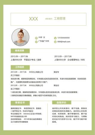 小清新工商管理word个人简历模板