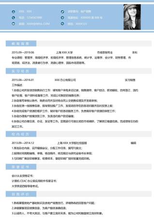 在校生无经验会计助理单页简历