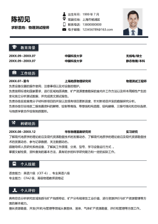学术风研究生理工类简历