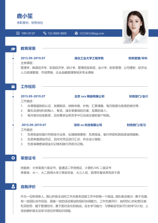 财务会计统计出纳相关专业应届生求职简历模板