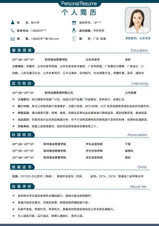 应届生个人简历无经验应届生公关宣传企划类求职简历模版